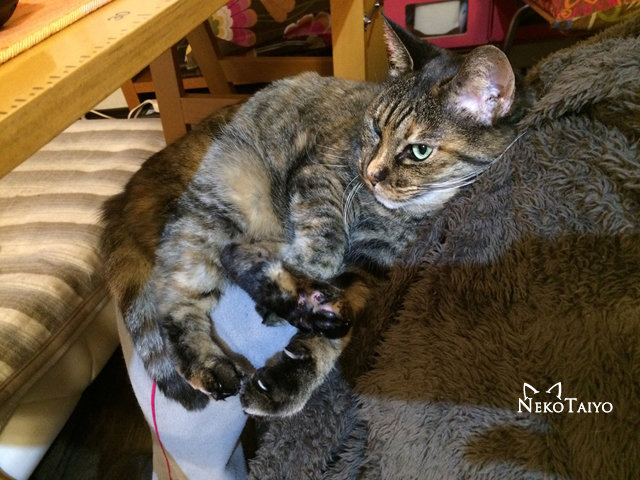 抱っこされるのは苦手だけど、膝でくつろぐのは得意なリンちゃん