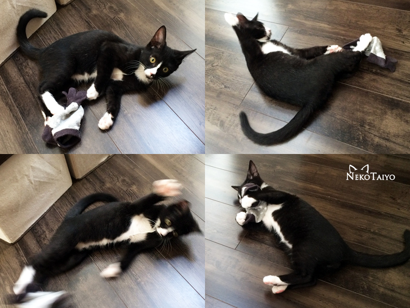 靴下ハンター 洗面所の戸が開いていると、洗濯カゴから私の靴下を持ち出すので、履かない靴下を1つプレゼント…数時間後、放置された靴下を拾い上げてみたら、見事に穴が空いてましたよ お気に入りの靴下は守りぬかなければ