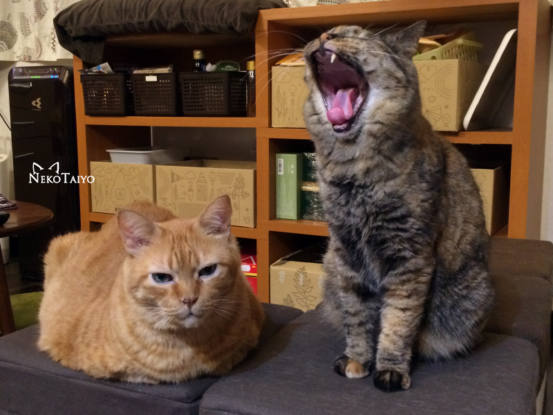 ちびっ子が変なの付けて帰ってきたし、変なの付けたまま走り回ってるしアタックしてくるし…まったく、もう~…なんて言ってるかも