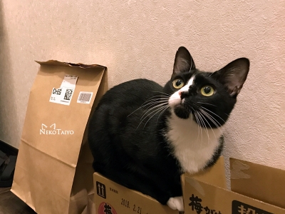 廊下に箱があれば必ず乗ってみる…開いてれば入る…ユニ