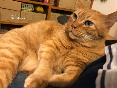 膝の上でリラックスして、とても満足そうなノイだけど…そろそろ、暑いよ