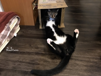 そして…夜…私がベッドに入るとノイリンは一緒に寝るためにそばに来るんだけど、ユニは夜だけの楽しい遊び場と思うのか、おもちゃを持ってきて一通り暴れないと寝てくれない… :weepy: