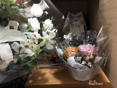 ノイ、yuiさんと村長さんからお花が届いたよ。嬉しいね