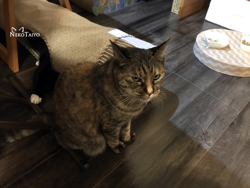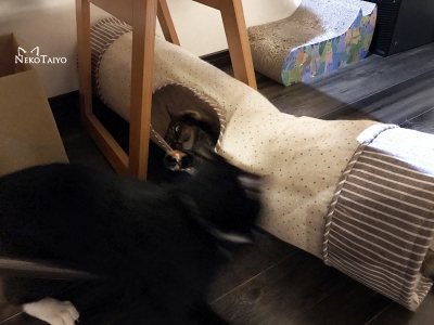 ユニに尻尾をオモチャにされてムッとしながらも逃げず…