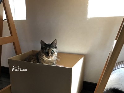 窓から日の差す時間帯、窓の外の植え込みが風に揺らぐと光も揺らめいて、それが気になるリンちゃんです