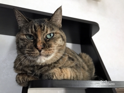 今日は猫階段でくつろぎ中…ちょっと、カメラ嫌いモード入ってます