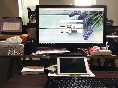 ユニが何処に居るかというと…モニターの後ろの箱の中…