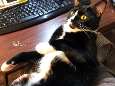 ユニは膝に乗ってくるとデスクの上に手を置いて…どこを押してるのかわからないけど、画面がいきなりスクロールしたり拡大したり縮小したり…やめてよね~