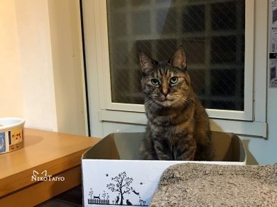 わざわざ箱に入って水を飲む…わざわざ箱に入ってぼんやりする…のは、なぜ? そこに箱があるから、かなぁ