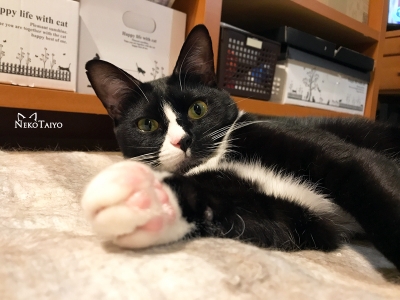 昨日は下の部屋の電気毛布の上に誰もいなかったけど、今夜はフタリともいる…これは寒くなるって意味かな?