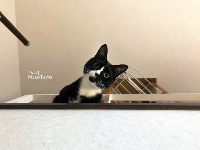上から見ると こんな風に上から私を見る時、不思議そうな顔をしているような気がするが、ひょっとしたら、そもそもこんな顔? 着替えようとしていたら、私のスウェットに潜り始めたユニ…足の方から出てくるかな、と思ったけど、途中で動かなくなったので救出した