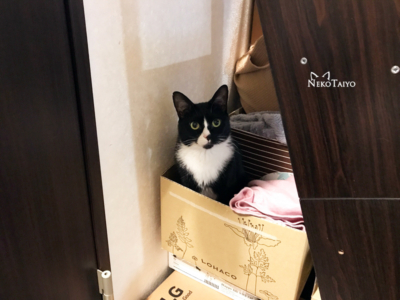 猫階段裏のロハコ箱にパジャマやスウェットを入れてるんだけど…