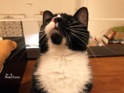 短毛だし、肉眼で見るとそうでもないんだけど、何故か写真に撮ると胸元がゴージャスに見える