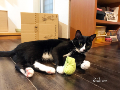 突然獲物代わりの丸めた靴下をくわえて走り出すユニ…獲物をロフトから落として「逃げた!」とばかり追いかけて、またくわえて走り回り…突然休憩 そのオンオフのスイッチはどこにあるんだろうねぇ