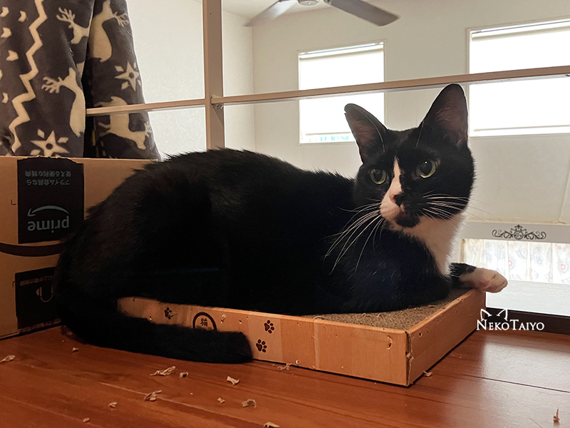 今日も引き続き、爪とぎかすを集めています