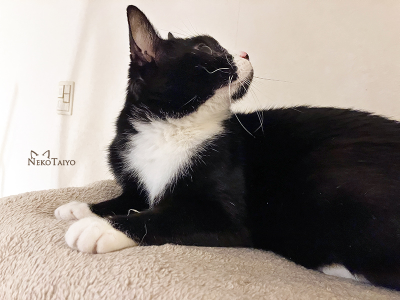 獲物…オモチャだけど…を見失うと、必ず、ソッチちゃうで!の方を向きます…