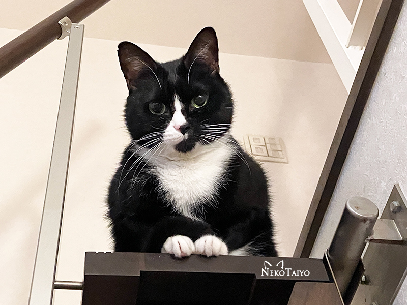 お出迎えポーズだけど、階段上がっていくと、どいてくれない…