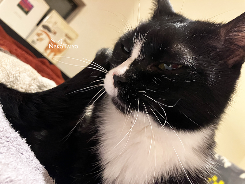毛づくろい中、一瞬、極悪顔になるヤツ…