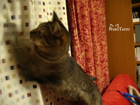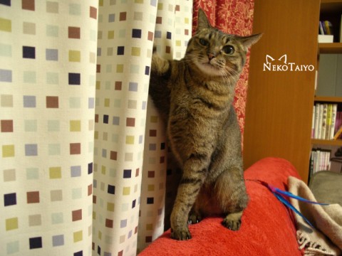 カーテンに捕らわれてしまったココです