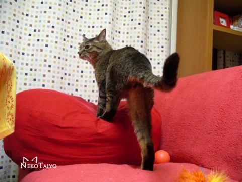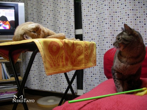 もうすぐ13歳 もうすぐ13歳ですが、体型も運動能力も、そして美しさも変わらないココちゃまです 横のテーブルの上にデンと陣取ったノイが気になる様子… そして、ノイがテーブルの上でクネクネし始めたので…引いてます…