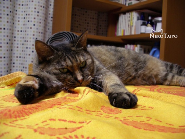 テーブルの上でくつろぐのは良いとして…