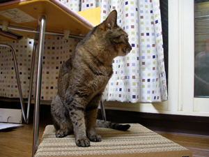 ココ~ ココ~と呼ぶ前に、呼ばれる気配を感じるのか、耳だけこちら向き で、呼ぶと振り向くココです 座布団型の爪とぎってのを買った。一番乗りはココ。気に入ったようだ。ちょっと高かったけど、たぶん、長持ちしそう。