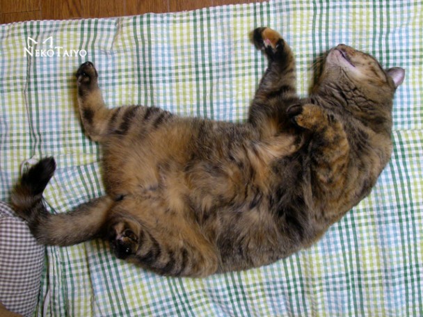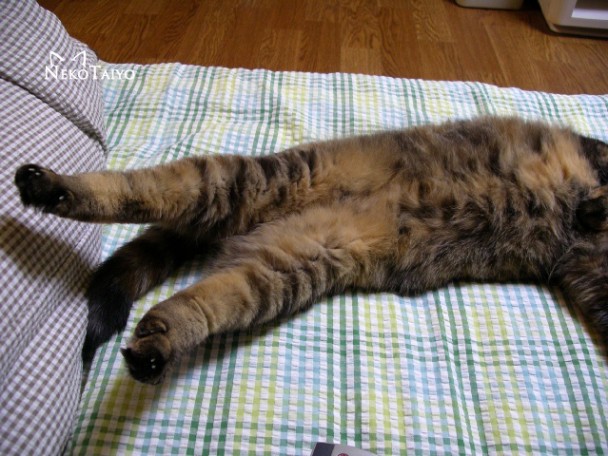 で、お腹をナデナデすると伸び~ん ただ、リンの伸び~んは一瞬なので、なかなか全景が写真に収まらない
