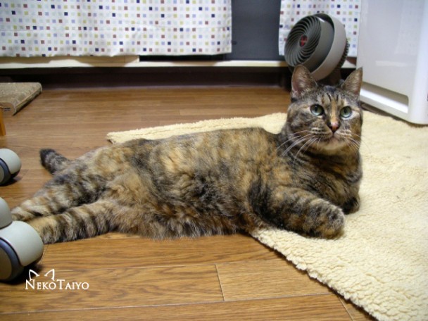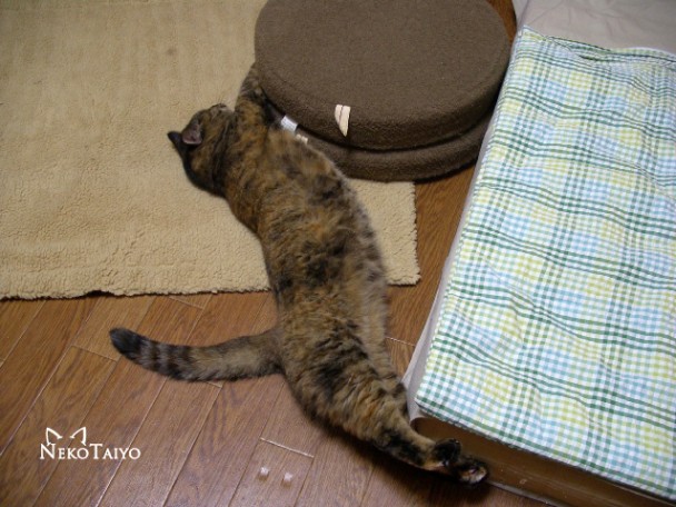 伸び~んの時間はほんの2秒ほど、すぐに、何事もなかったかのようにすましてくつろぎポーズ