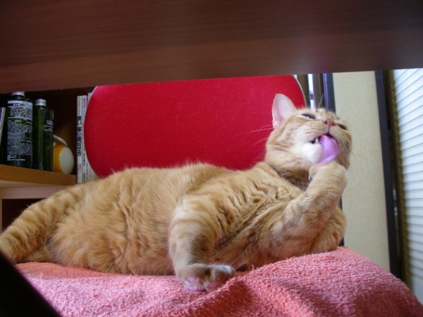 毛づくろい中の猫を撮っても、たいていブレブレ写真が量産されるだけなんだけど、たまたまチャンと写った1枚 相変わらず立派なお腹ですが…たるんでいるので、それほど身は詰まっておりません