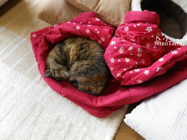 もう、無意識に、猫が寝やすい形に脱ぐという習性が見に付いている、かも