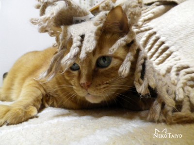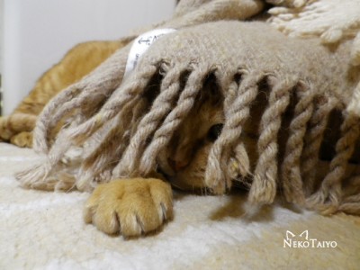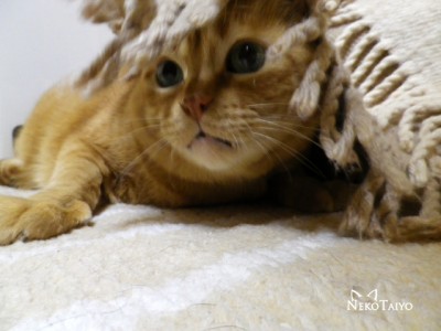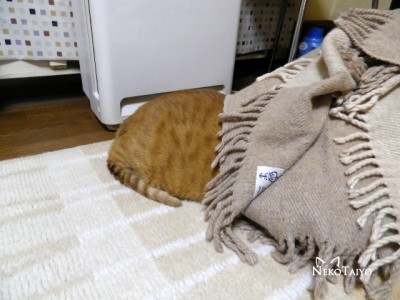 真剣に狙い~の…でも、飛び出して追跡するには、ホットカーペットが暖かすぎたようです