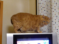 登った! 降りた! 突然、ドスドスドスっと、ノイが棚に登って、箱にスポッと入ったので、慌てて写真を 撮ったと思ったらまた、箱から飛び出して… ドスドスドスっと降りていったのでした… ちなみに、うちはケーブルなので地デジなんのその、テレビは未だブラウン管です。 も一つちなみに、テレビでは千鳥が漫才中でした