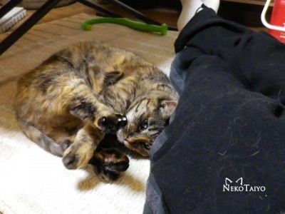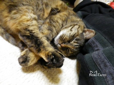 猫の寝姿も、得意ポーズというか、それが寝やすい格好なんだろうなというか、そういうのがあるけれど