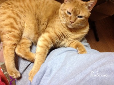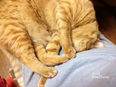 ノイは腕の中には収まらないので膝の上…