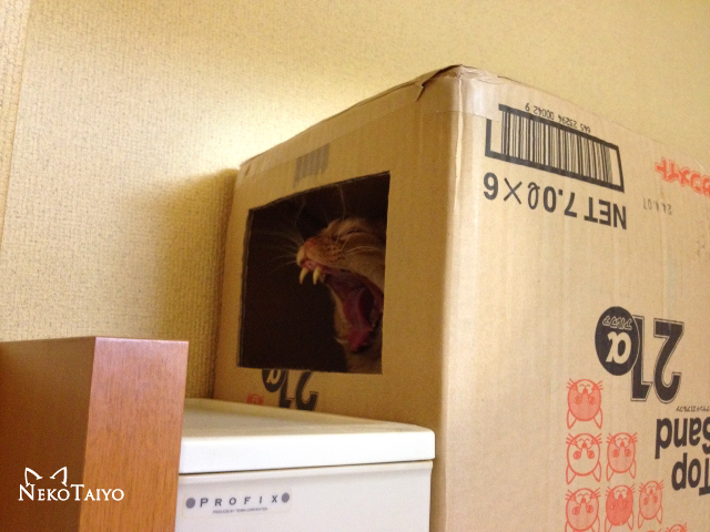しばらく静かだった箱の中からガサゴソ音がするので、覗いてみたら…オヤ、寝起きは不機嫌?