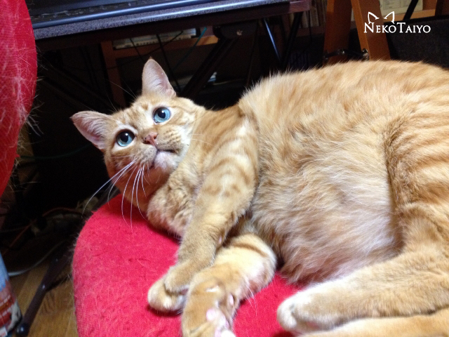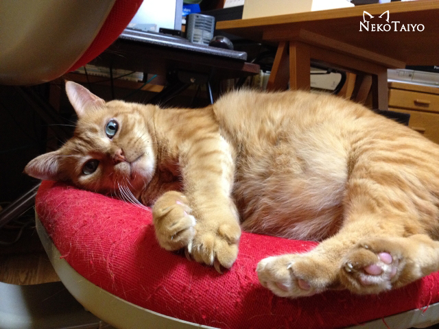 私の椅子に乗ってグネグネするので、椅子を回してやると